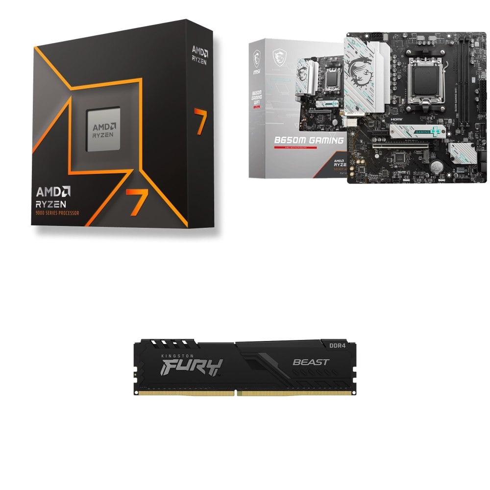 ☆期間限定★ AMD R7 9700X+微星 B650M GAMING WIFI M-ATX主機板+金士頓 獸獵者 D5 5600 16G CL36 黑 記憶體