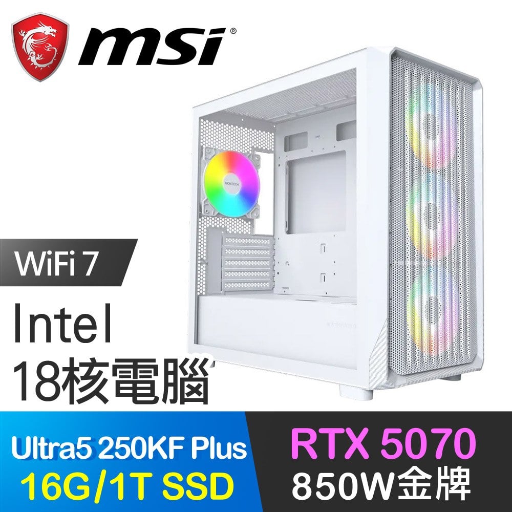 微星系列【元素震爆】Ultra5 250KF Plus 18核 RTX5070 電腦主機(16G/1TB SSD)