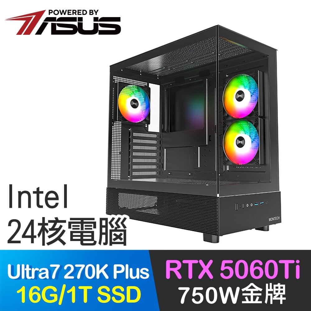 華碩系列【閃電之拳】Ultra7 270K Plus 24核 RTX5060Ti 電腦主機(16G/1TB SSD)