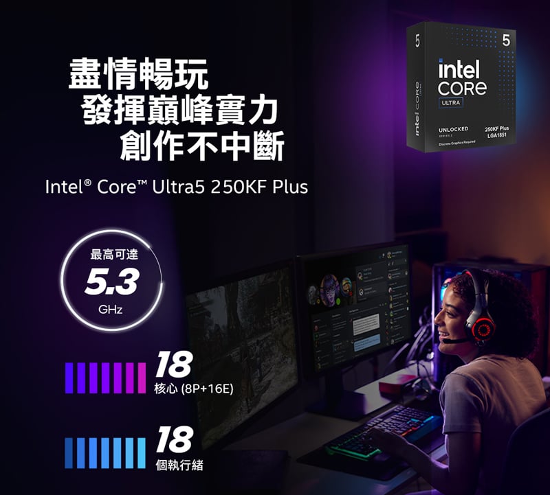 • 處理器:Intel Core Ultra 5 250KF Plus 18核心