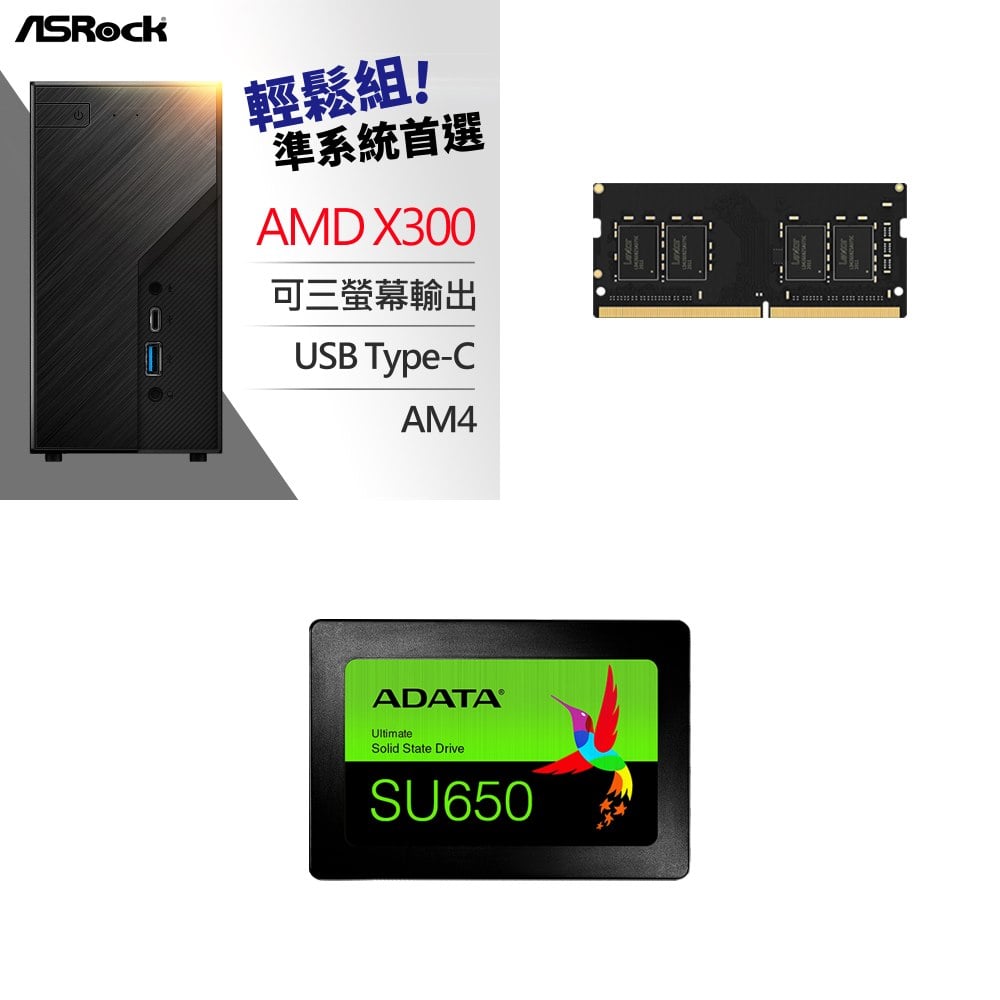 ☆期間限定★ 華擎 Deskmini X300 2.5G Mini-STX準系統+Lexar NB-DDR4 3200 8GB筆記型記憶體+威剛 SU650 240G SSD