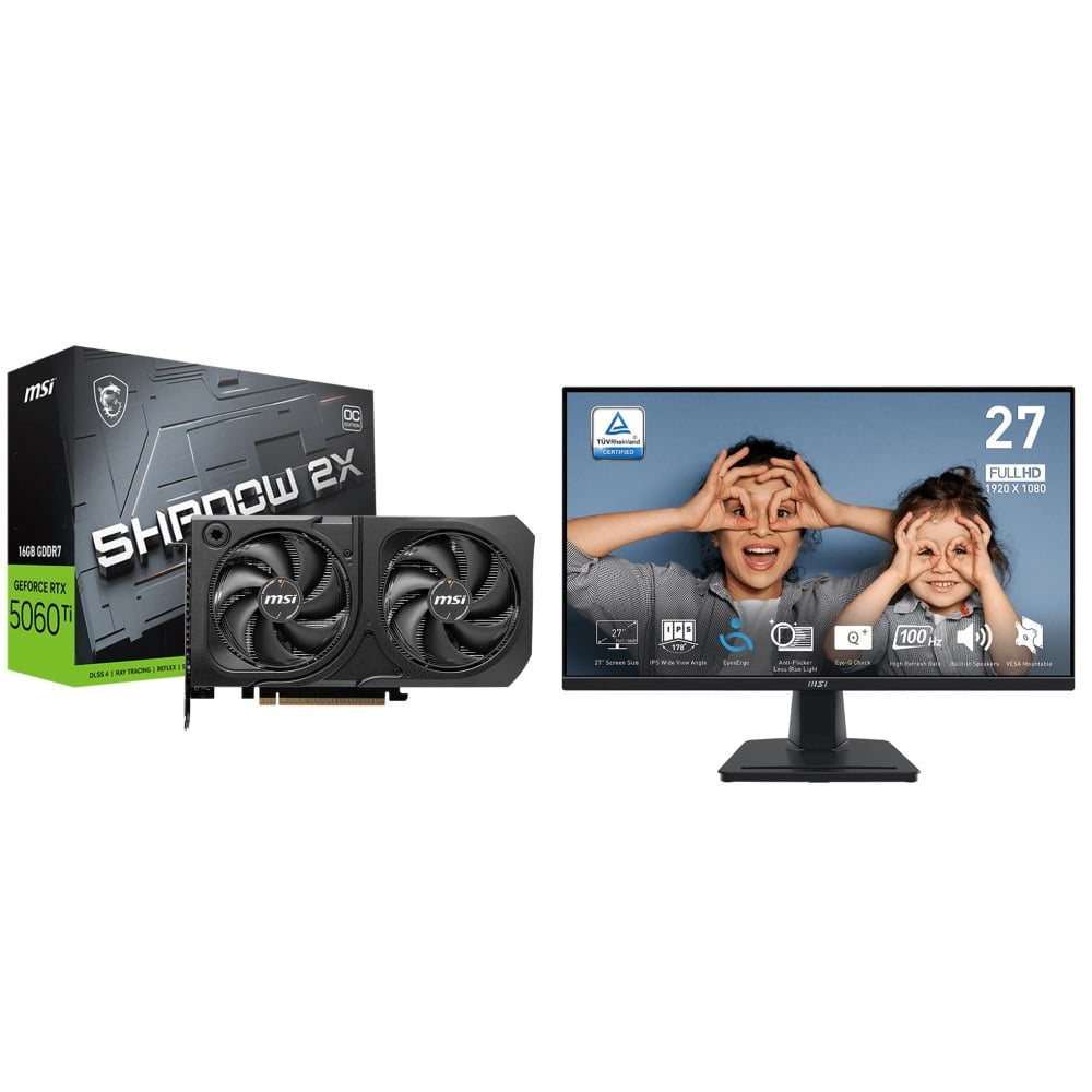 ☆期間限定★ 微星 RTX 5060 Ti 16G SHADOW 2X OC PLUS 顯示卡+微星 PRO MP275 27型 IPS 100Hz 護眼螢幕