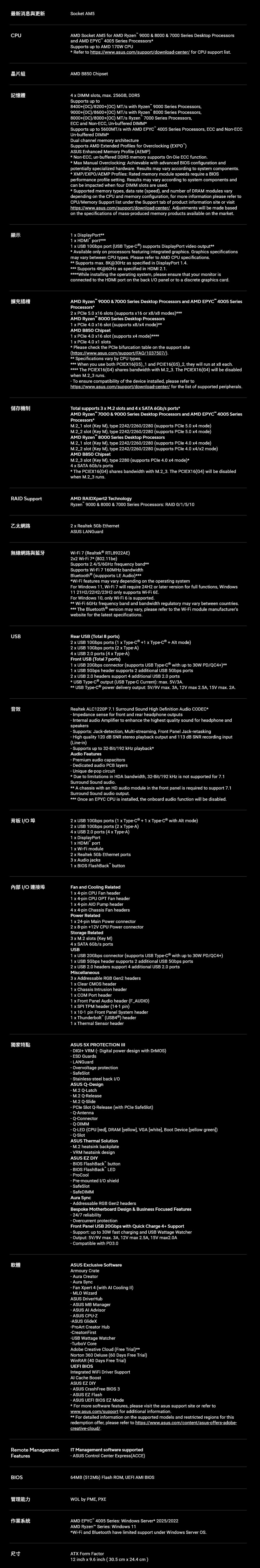 ASUS 華碩 PROART B850-CREATOR WIFI NEO AM5主機板(ATX/3+2年保)