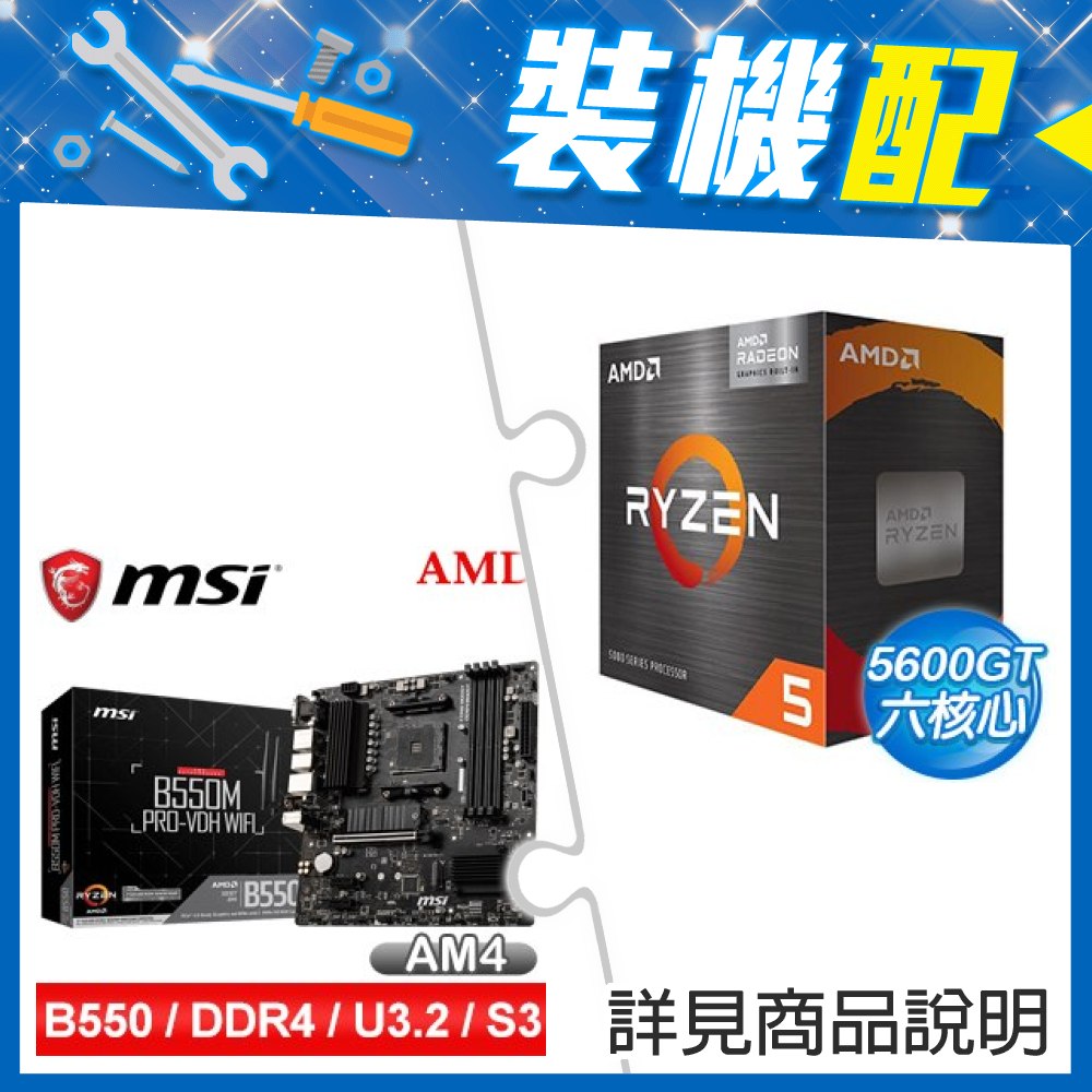 ☆裝機配★ AMD R5 5600GT+微星 B550M PRO-VDH WIFI M-ATX主機板