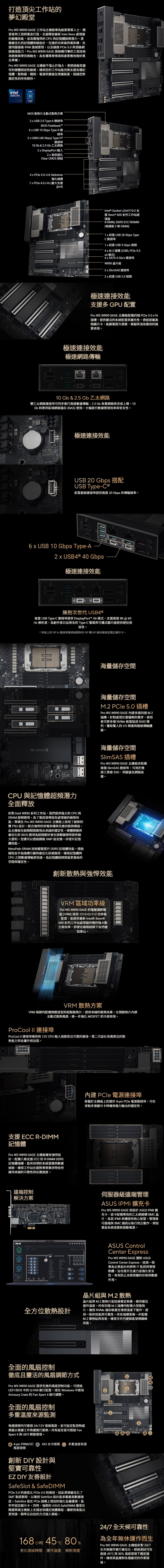 - CPU 與記憶體超頻:支援高達 4TB 的 ECC R-DIMM DDR5 記憶體模組 (2DPC)