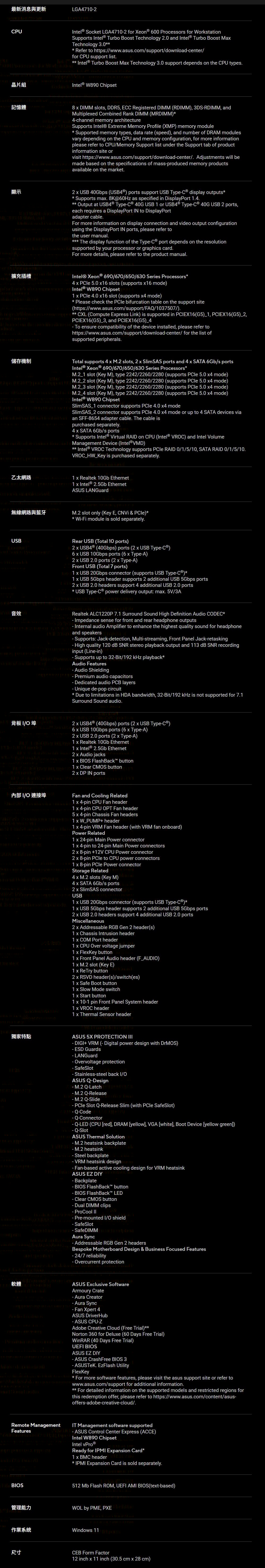 【客訂】ASUS 華碩 PRO WS W890E-SAGE SE LGA4710-2 工作站級主機板