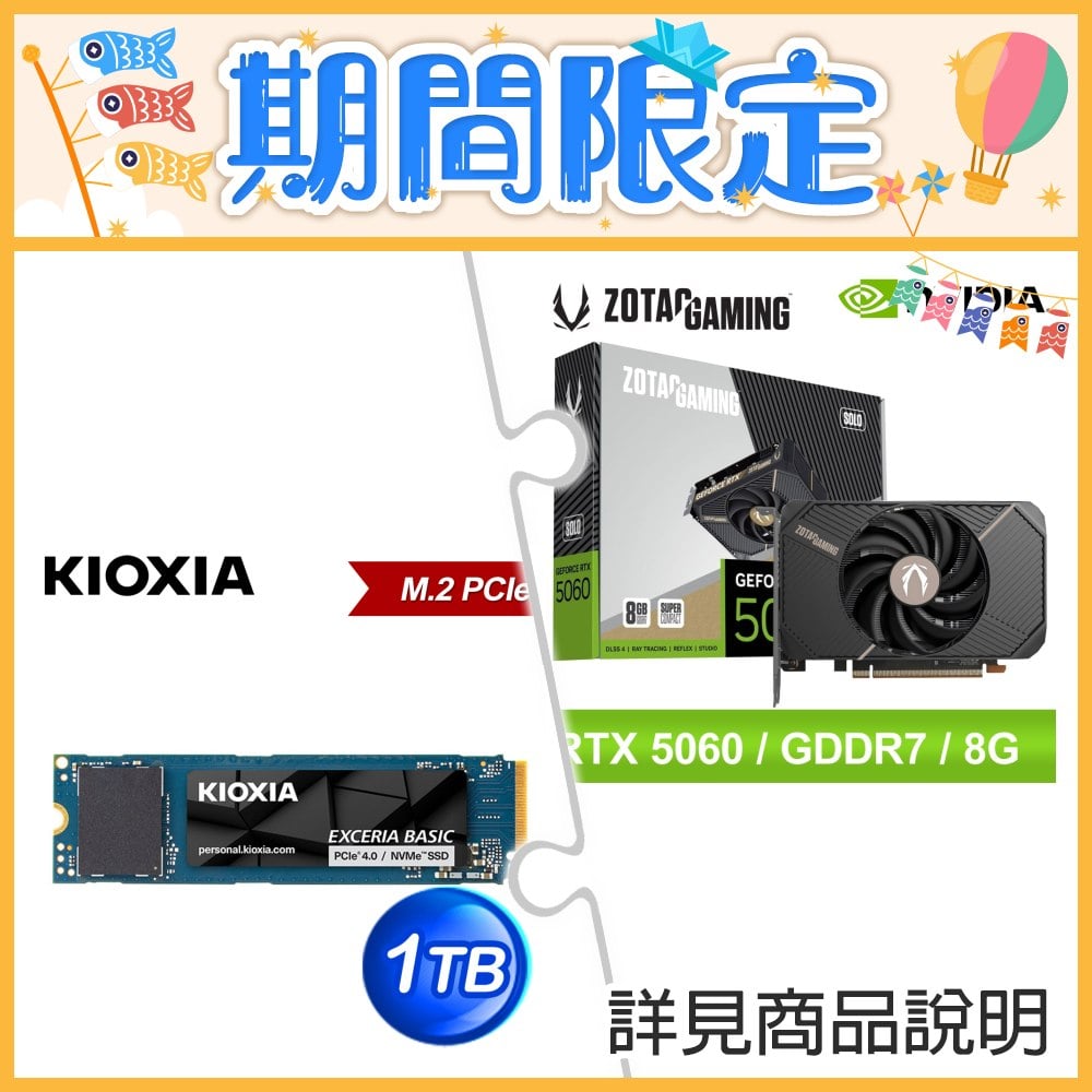 ☆期間限定★ 索泰 RTX 5060 SOLO 8G 顯示卡+鎧俠 Exceria Basic 1TB Gen4 M.2 SSD