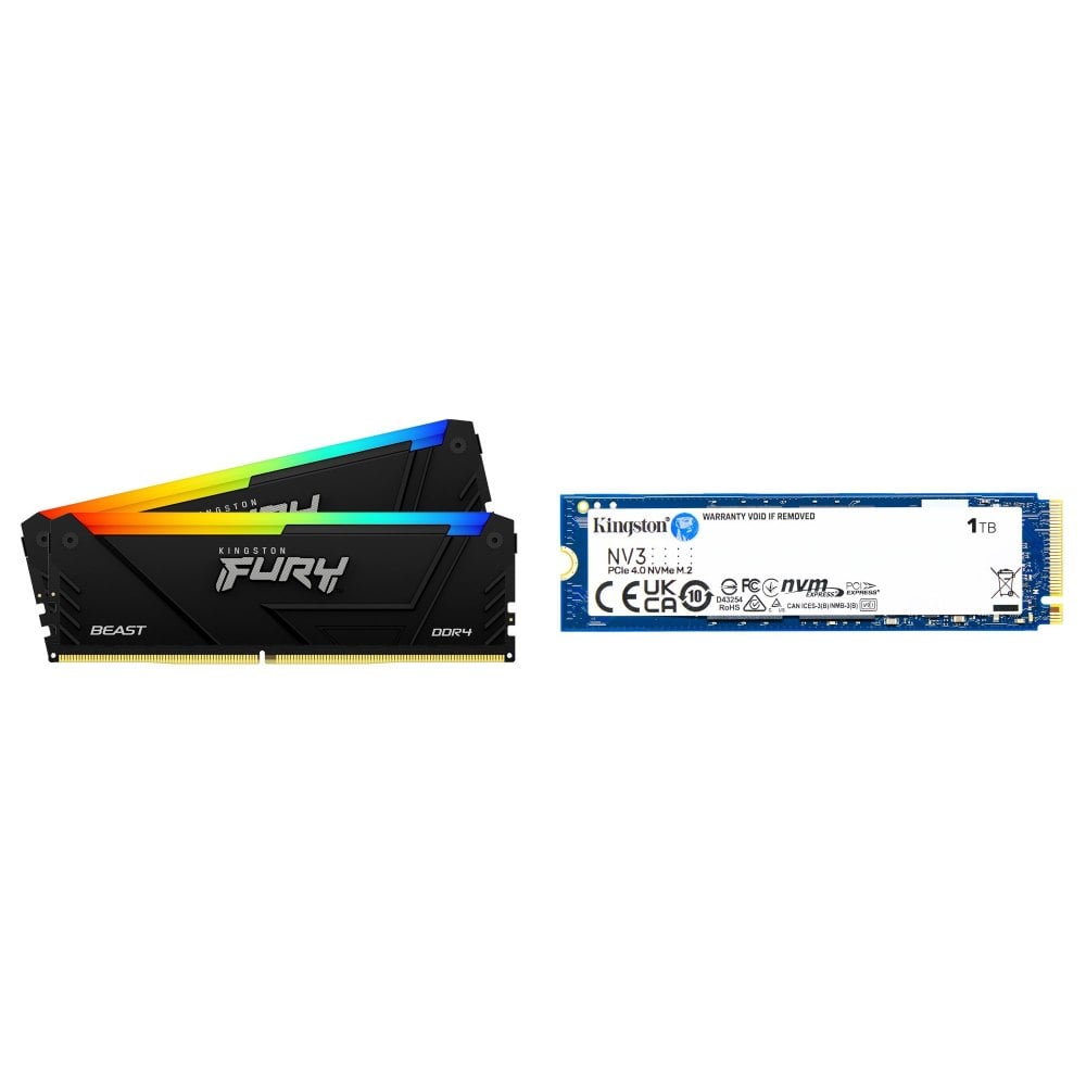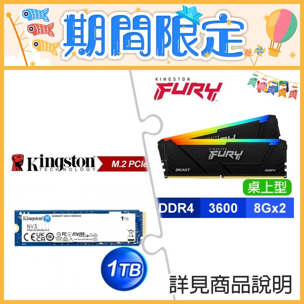 ☆期間限定★ 金士頓 RGB 獸獵者 D4 3600 8G*2 CL17 黑 記憶體+金士頓 NV3 1TB M.2 PCIe 4.0 SSD