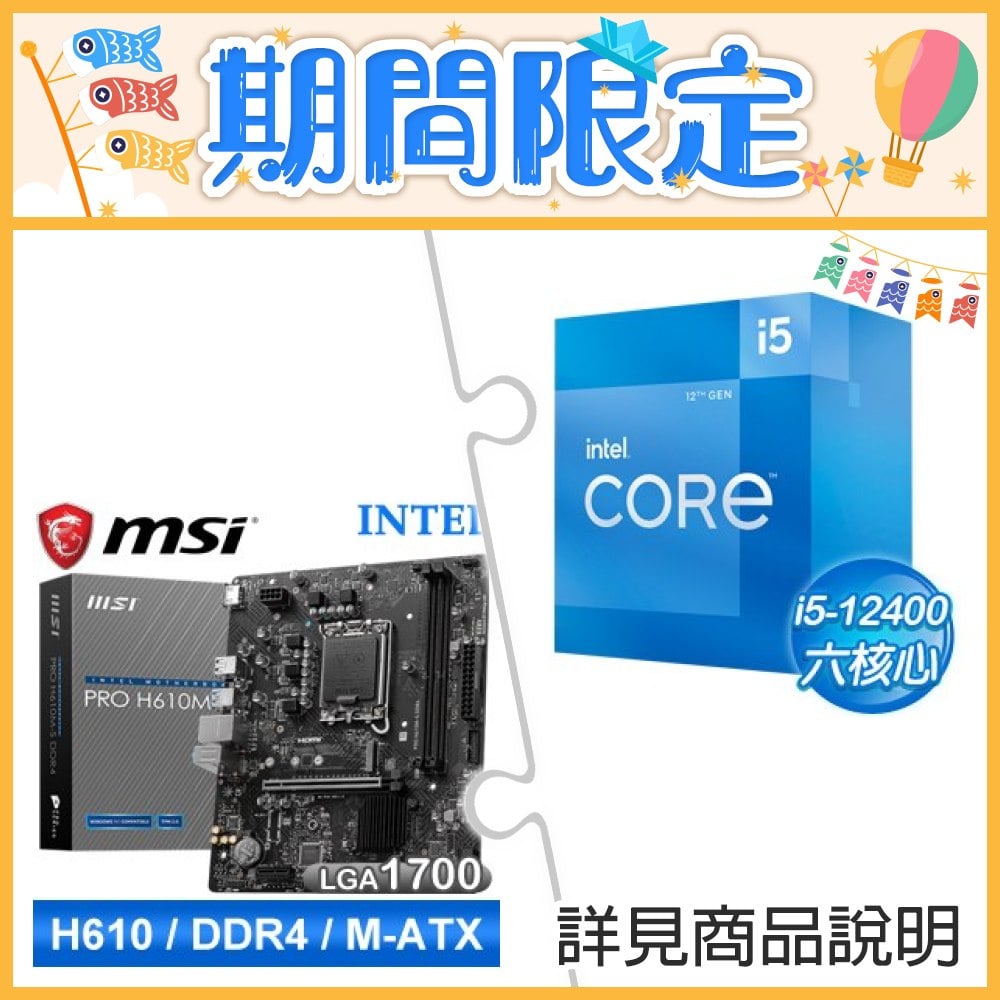 ☆期間限定★ i5-12400+微星 PRO H610M-S D4 M-ATX主機板(X2)