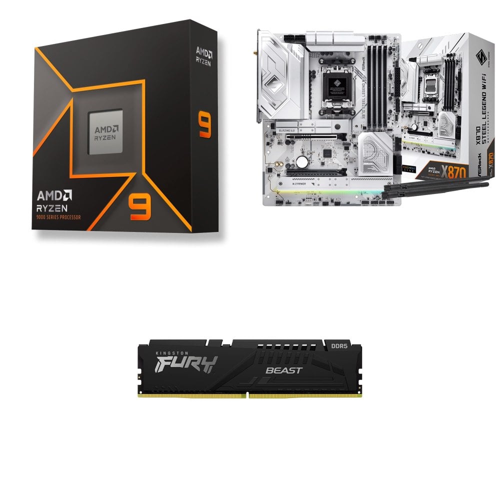 ☆期間限定★ AMD R9 9950X+華擎 X870 Steel Legend WiFi ATX主機板+金士頓 獸獵者 D5 5600 32G CL36 黑 記憶體
