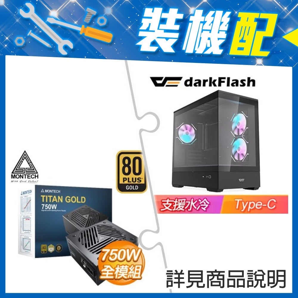 ☆裝機配★ darkFlash【MOTI 鏡之島】全景玻璃 M-ATX機殼《黑》+MONTECH TITAN GOLD 750W 金牌 全模組 ATX3.0(PCIe 5.0)