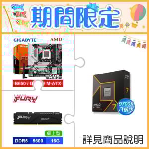 AMD R9 7900+技嘉 B650M H主機板+美光 PRO DDR5 6000 16G CL36 黑 ★送羅技 MK240 Nano 無線鍵鼠組