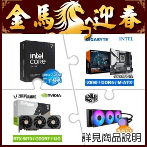 Intel Core Ultra 7 265K+Cooler Master Custom RTX 5080 OC MF ARGB ★送微星Z890-A WIFI D5 ATX主機板