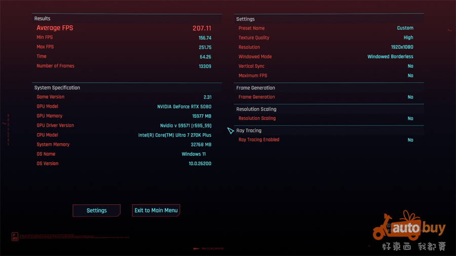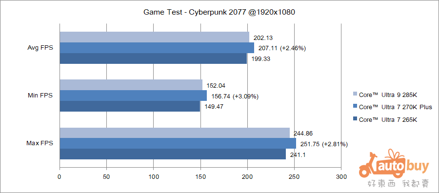 270K Plus 於《電馭叛客2077》中獲得平均 207.11 FPS 之成績。