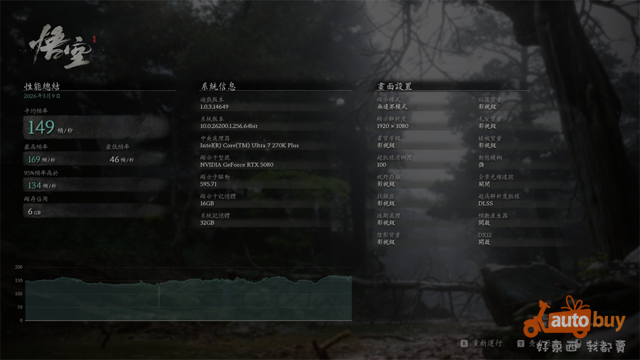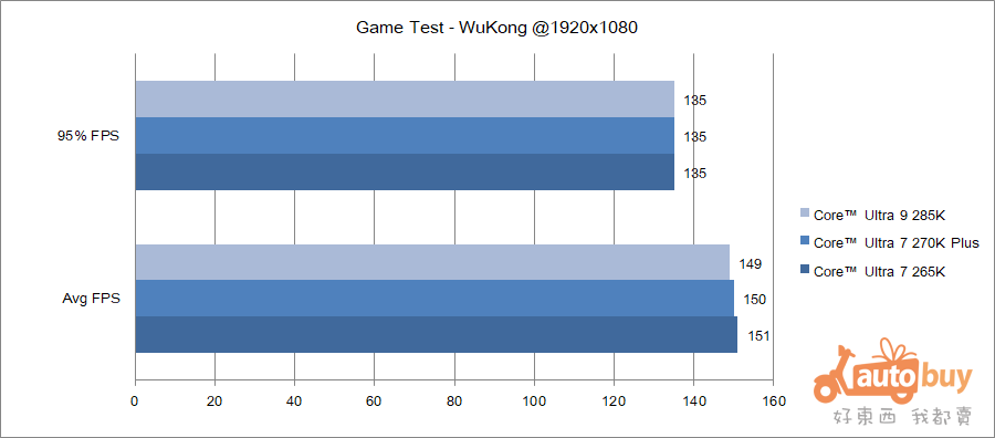 270K Plus 於《黑神話:悟空》中獲得平均 149 FPS,其中 95% 幀率皆在 134 FPS 之上。