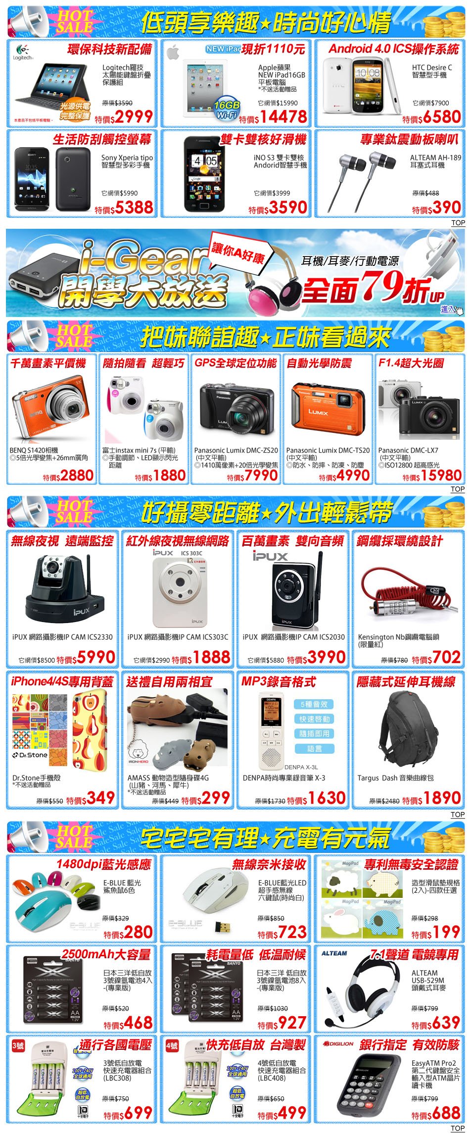 AUTOBUY購物中心 Logitech羅技 太陽能鍵盤折疊保護組 Apple蘋果 NEW iPad16GB 平板電腦 HTC Desire C智慧型手機 Sony Xperia tipo智慧型多彩手機 iNO S3 雙卡雙核Andorid智慧手機 ALTEAM AH-189 耳塞式耳機 i-Gear 開學大放送讓你A好康 BENQ S1420相機 富士instax mini 7s (平輸) Panasonic Lumix DMC-ZS20 (中文平輸) Panasonic Lumix DMC-TS20 (中文平輸) Panasonic DMC-LX7 (中文平輸) iPUX 網路攝影機IP CAM ICS2330 iPUX 網路攝影機IP CAM ICS303C iPUX  網路攝影機IP CAM ICS2030 Kensington Nb鋼纜電腦鎖(限量紅) Targus  Dash 音樂曲線包 DENPA時尚專業錄音筆 X-3 AMASS 動物造型隨身碟4G - (山豬、河馬、犀牛) Dr.Stone手機殼 (專區) 造型滑鼠墊規格(2入) 4號低自放電快速充電器組合(LBC408) 3號低自放電快速充電器組合(LBC308) 日本三洋 低自放3號鎳氫電池8入-(專業版) ALTEAM USB-529M 頭戴式耳麥 EasyATM Pro2 │ 第二代鍵盤安全輸入型ATM晶片讀卡機 E-BLUE藍光LED 超手感無線六鍵鼠(時尚白) E-BLUE 藍光鯊魚鼠6色 日本三洋低自放3號鎳氫電池4入-(專業版)